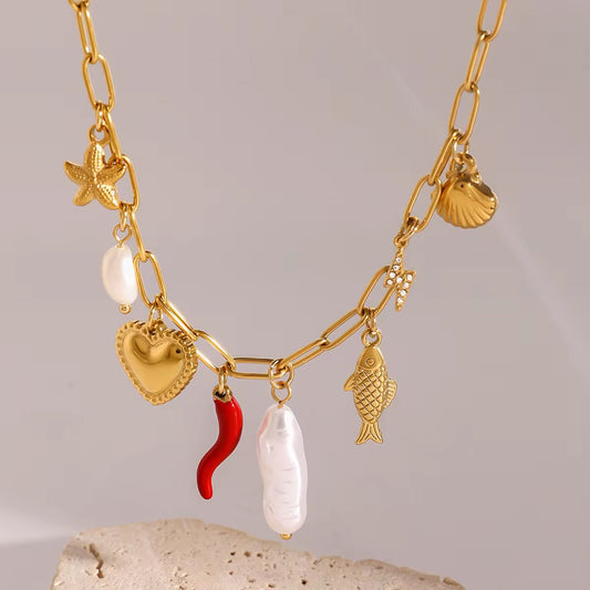 Starfish Charms Halskette mit Perle – Gold / Silber