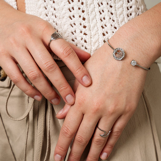 Mesh Strap Latin Stone Ring - Silver/Gold