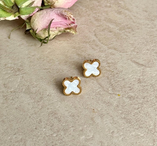Weiße Clover Ohrstecker