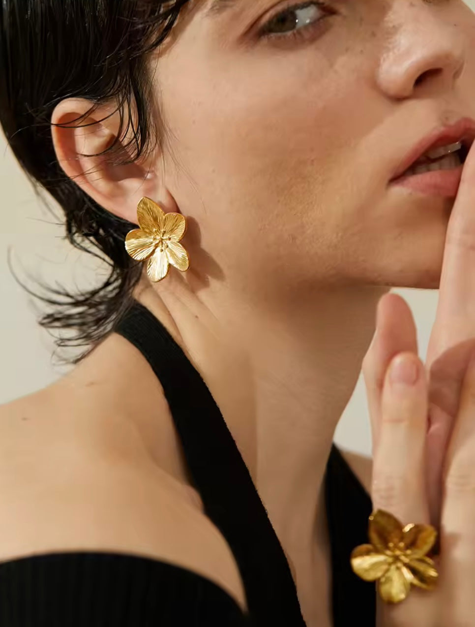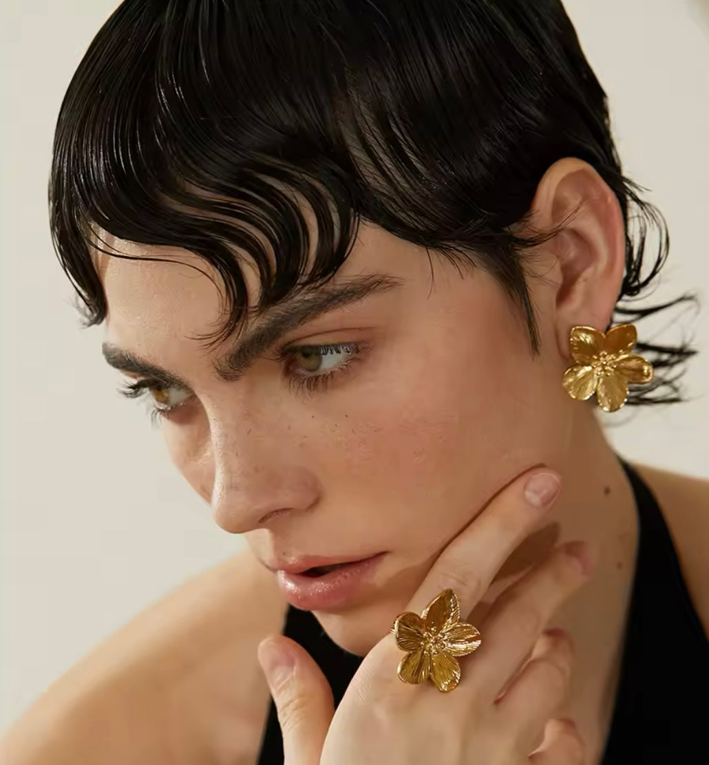 Die Flower Love Ohrringe vereinen feminines Blütendesign mit zeitloser Eleganz. Gefertigt aus Edelstahl und plattiert mit 18K Gold oder Silber – wasserdicht, hypoallergen und perfekt für den Alltag.